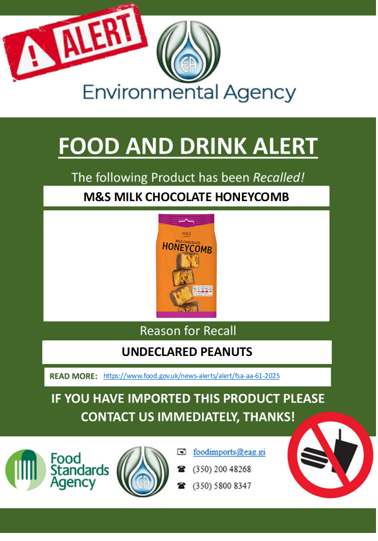 Marks & Spencers are recalling the above product. Point of sale notices will be displayed in all retail stores that are selling this product. These notices explain to customers why the product is being recalled and tell them what to do if they have bought the product.